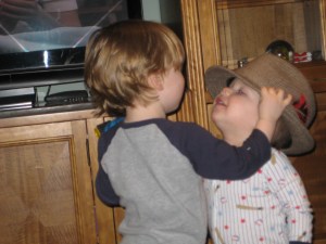 Until I get the latest photos uploaded, here’s another cute one of the boys playing with my grandfather’s hat.