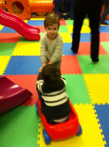 Today I finished getting the gifts and diaper bag ready while Yannick took Jakob to swimming. (I had to keep Henri home so we could get a credit for next session…don’t ask). Then we all went to my patent’s house for a LONG game of “guess which present is yours”. We put the boys down for their naps there so it would be easier on us, because the birthday party we had that after noon was closer to my patent’s house and started in the middle of nap time.