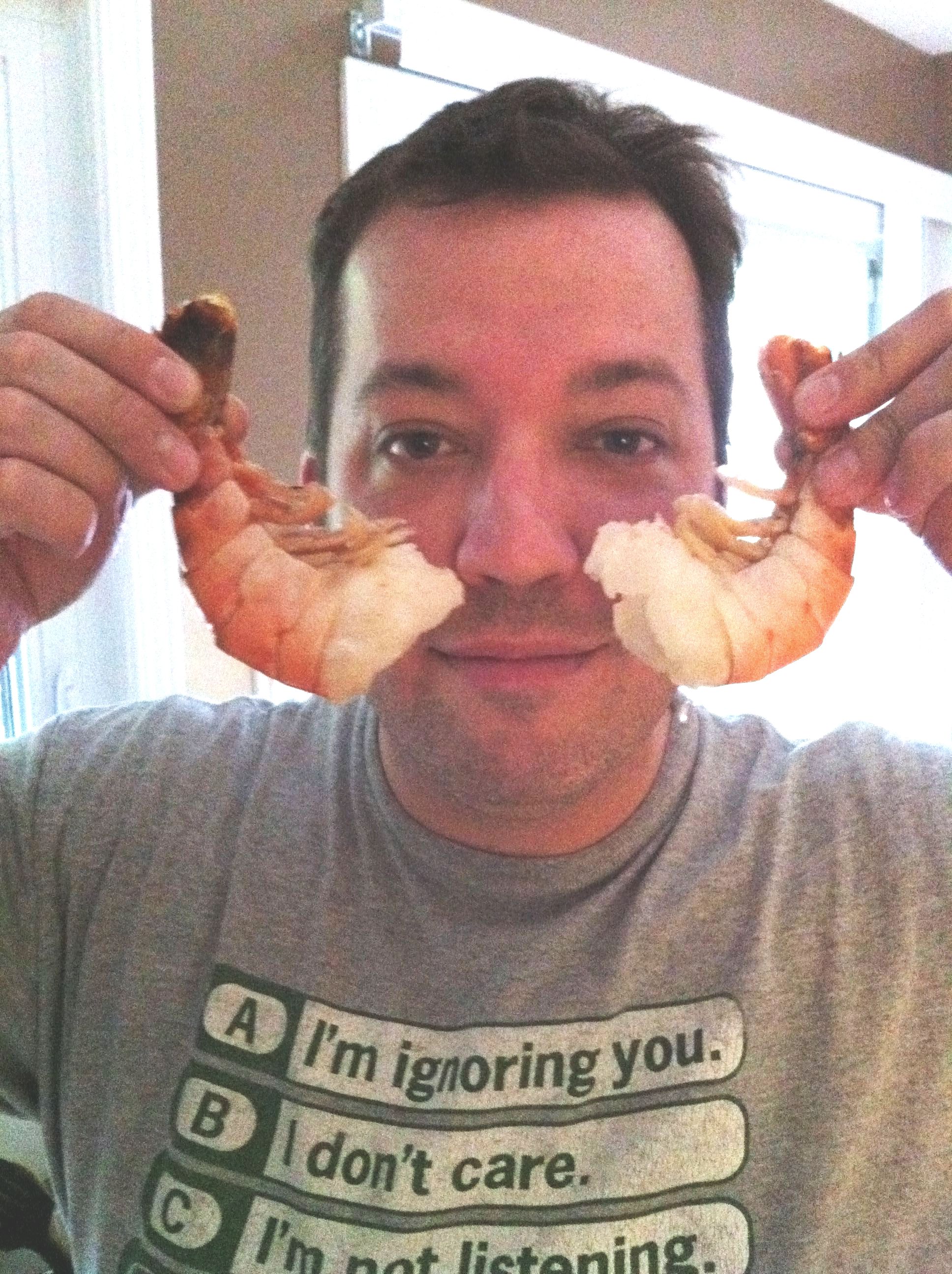 I had dinner with Yannick. We had steaks and veggies and literally jumbo shrimp.