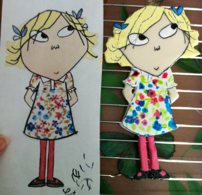 When I was asked to make this cake for Quentin’s birthday, all the way back in November 2013, I had no idea who Charlie and Lola were. Actually, I still don’t, beyond that link. So I went online and found this image to use as a reference: