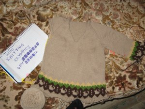 All in all the 2010 Knitting Olympics were a (mildly stressful) success. I finished my baby shower gift well ahead of the party date, got more Fair Isle under my belt, and managed to use up some stash that was lying around.