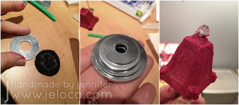 In the image above you can see the size of my original ring and then the one I cut out. You can also see my foam core disk.
