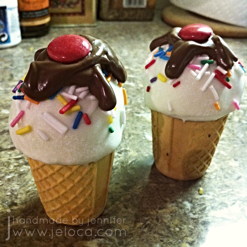 The ice cream “shell” is white candy melts heated in the microwave. Dip the cone in a few times to build up a thicker layer then top with sprinkles while the final layer is still wet.