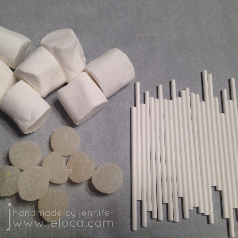 Step 1: Assemble your marshmallows, gumdrops and sticks to prepare the ghost bases