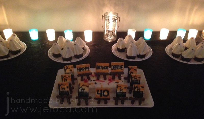 These were served along with the Paint Nite cake and cookies from my last post, and made for a really fun Hallowe’en party treat table!