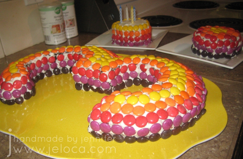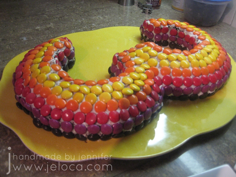 I used red gummy disks for tomato slices, first cutting them in half widthwise to get thinner discs, then I cut those in half again as a full circle of red candy would be a bit much with all the other candy.
