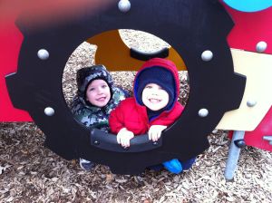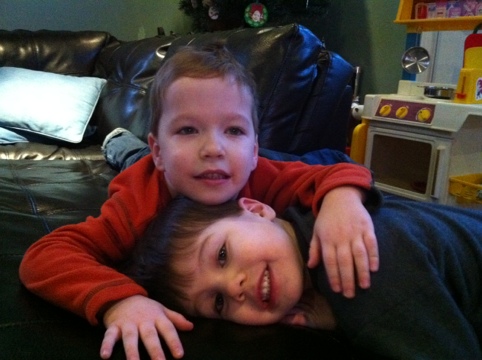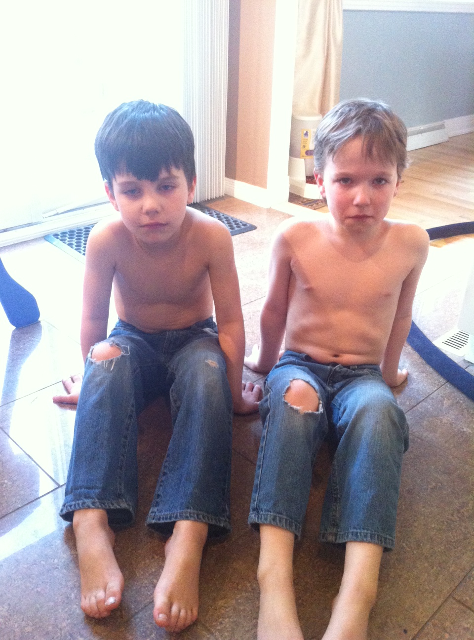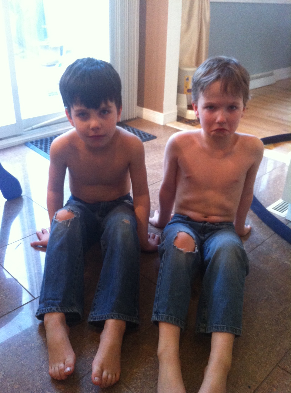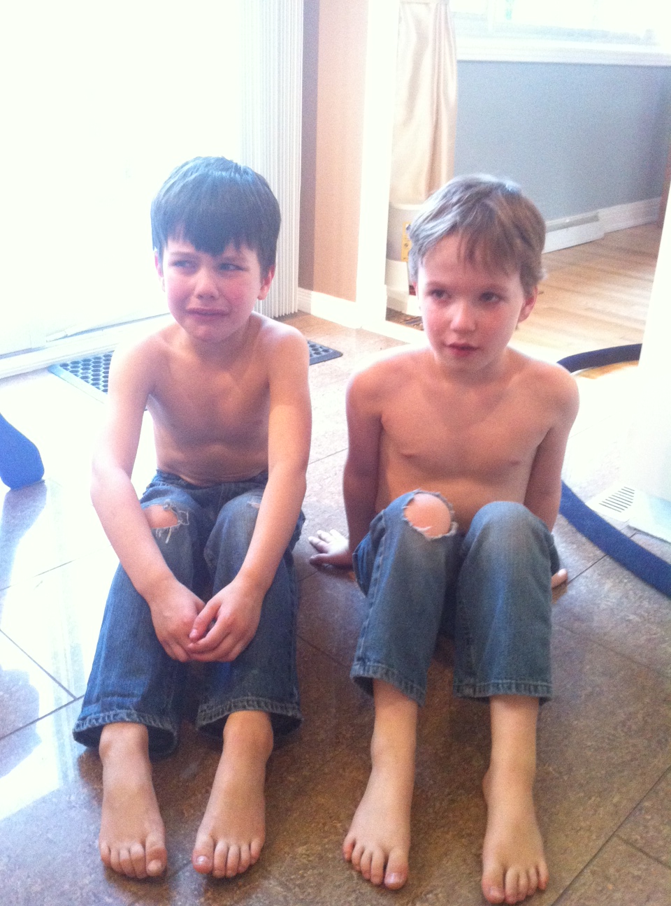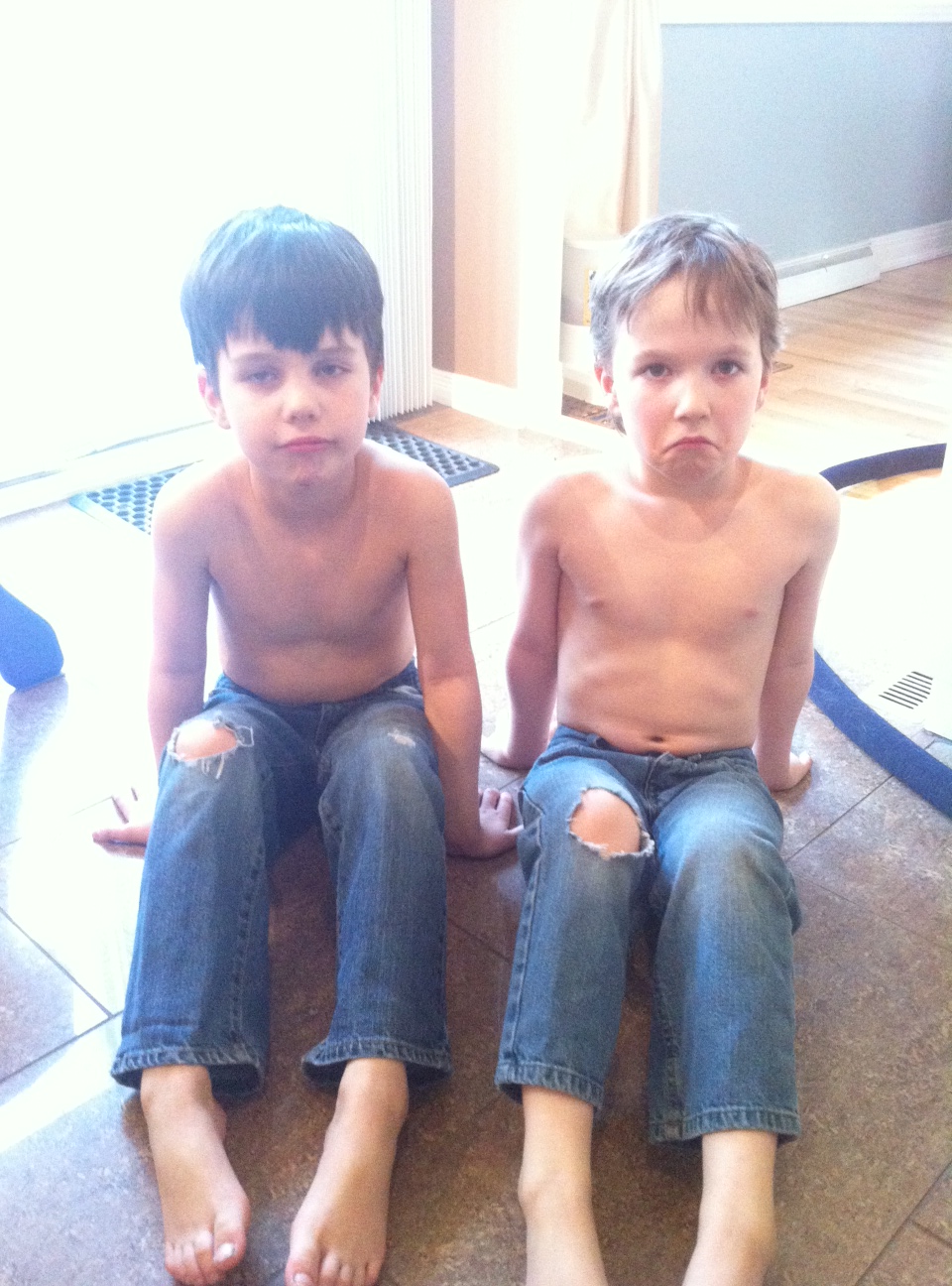 In addition to everything else I’ve been working on lately, I had the idea for a new project, a little something for the boys. In preparation for an eventual post about it, I needed a simple picture. Both boys, side by side, looking sad. Easy right?