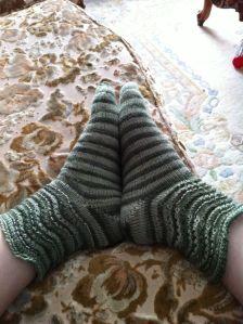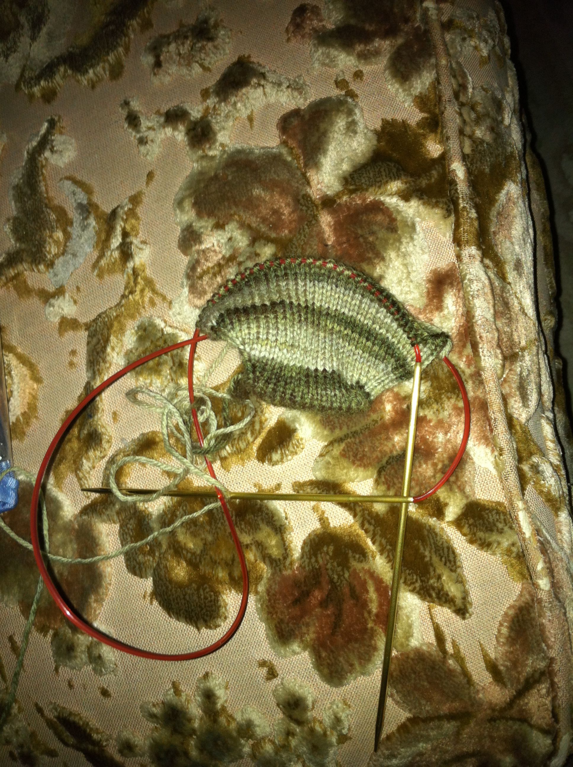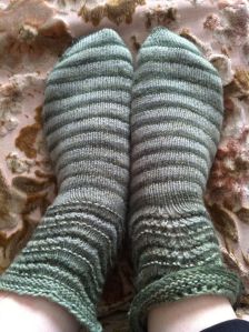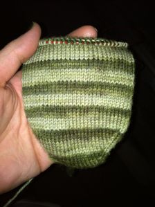 Here’s the tiny amount of toe I did get done on the way there. My January sock.