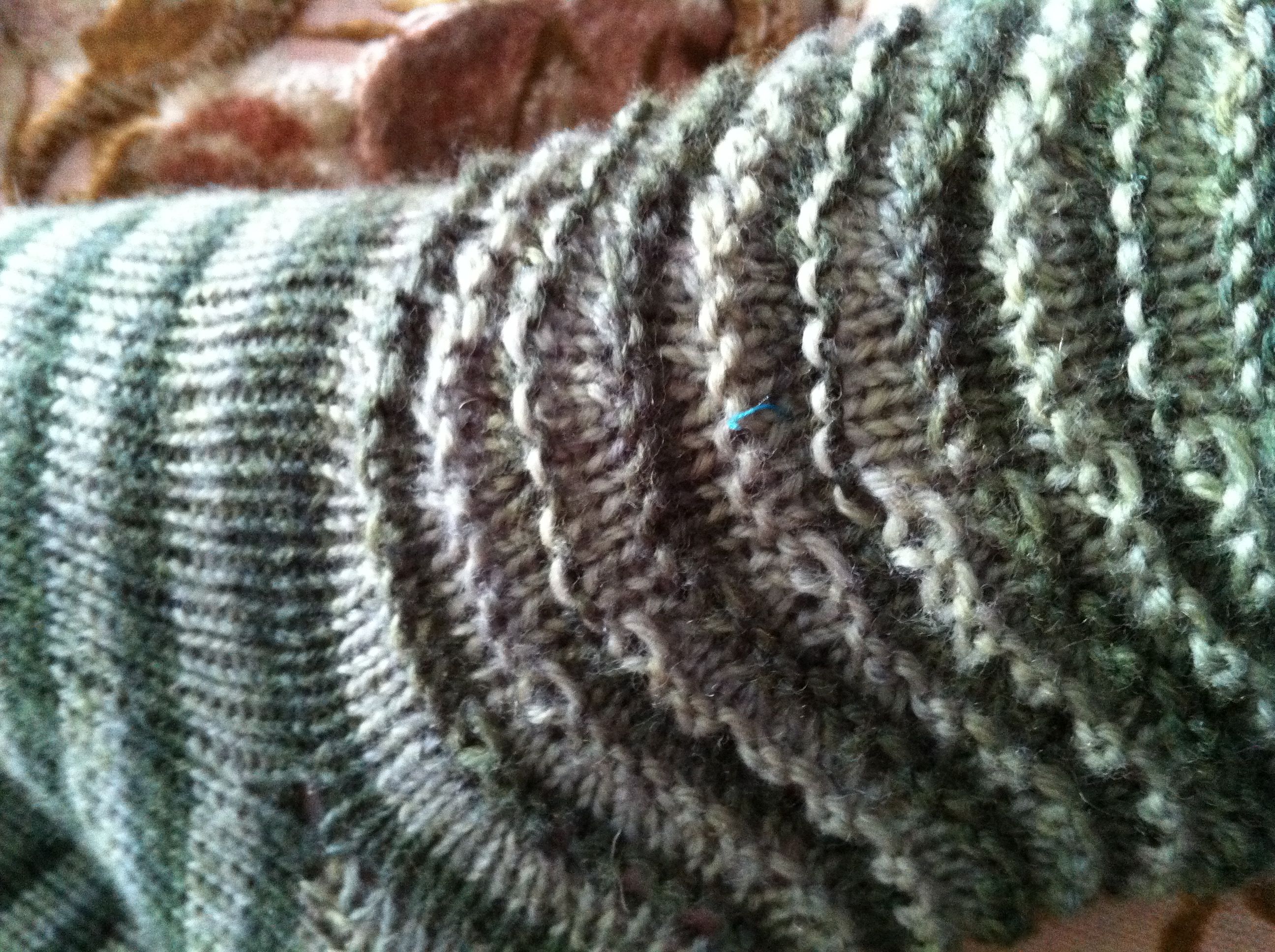 I did cast-on for my first socks of the new year. These were cast-on last week, en route to visit my 3rd surgeon for my 2nd second opinion, while my mom drove. Long story short, since neither my surgeon nor the 2nd opinion surgeon could find the hernias that I swear are there (and I’d know, as I’ve already had 3 fixed), I visited a laparoscopic surgeon to see if she could help. She also couldn’t find the hernias, and focused more on my pain and less on my claim of the physical symptom of the hernias popping out, but in the end she thought she could help, if to do nothing else but to rule out the hernias. I’ll be having diagnostic laparoscopic surgery in May. If she finds hernias, she’ll fix them as they’re found. If no hernias are found, hopefully she’ll find whatever is causing the popping and the pain.