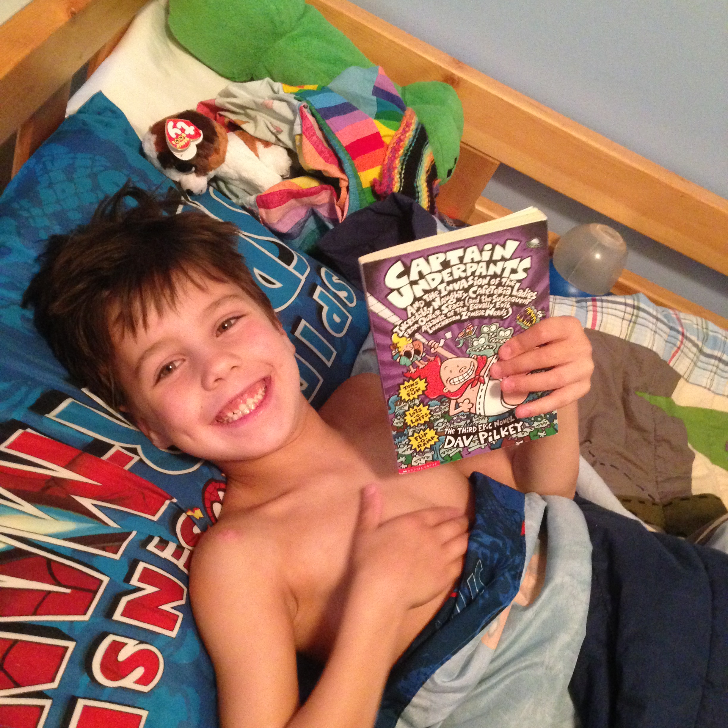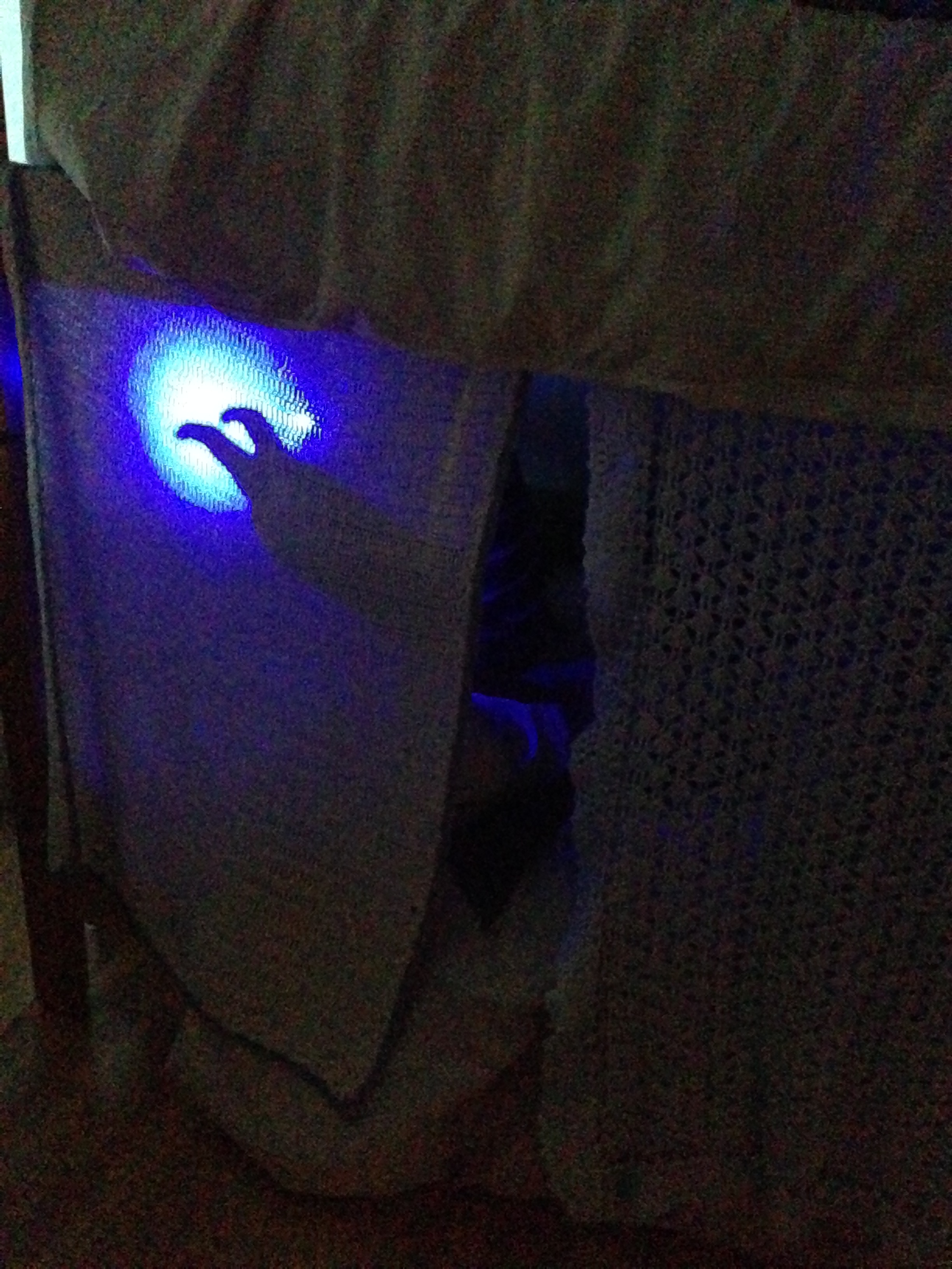 He won’t go to bed without a book and a flashlight. (He gets that from me).