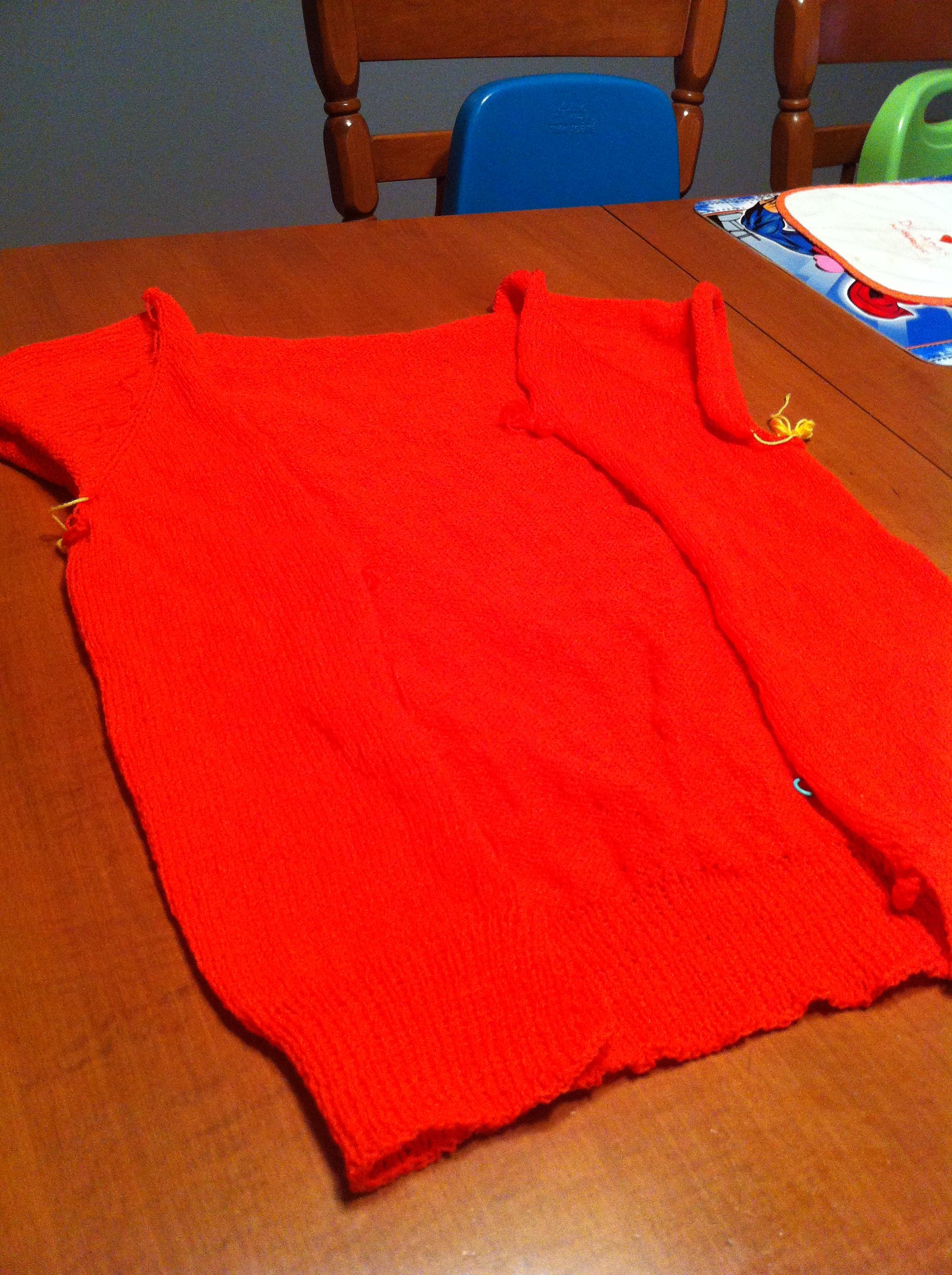 I got home and let my brother leave. I decided to see how much progress I’d made on the Featherweight Cardi after the bursts of knitting at the doctor and also at my friend’s dance show last weekend.