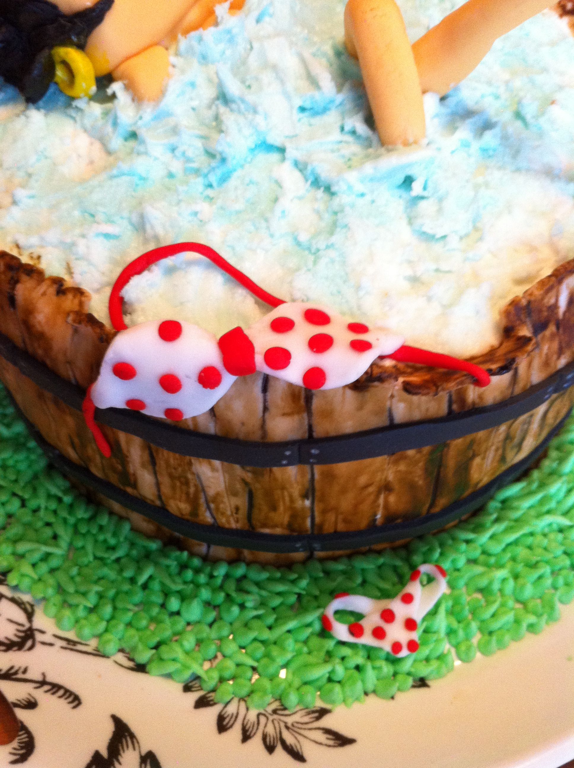 The bikini and flip-flops were planned, but the boobs were a last-minute addition ‘cus she didn’t look properly “settled” in the tub without them. 🙂