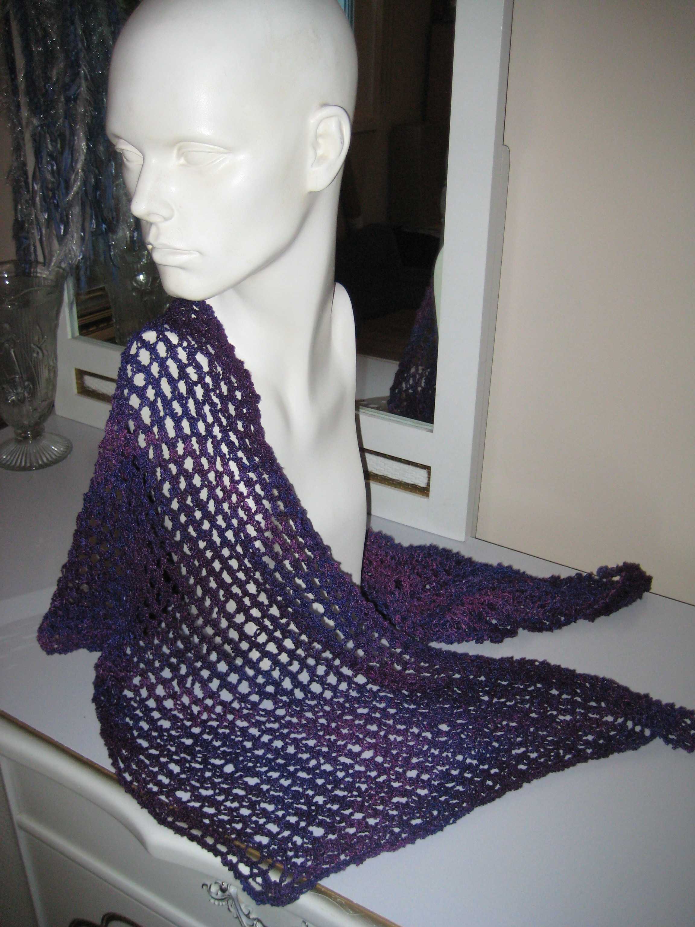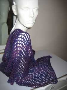 The shawl turned out longer than I’d thought, which is a relief. When Yannick brought me the yarn, what had appeared to be a single skein was actually 2 smaller skeins held together. I knew that the tail ends of where the two skeins met would be the approximate center of the shawl, and was worried that it wouldn’t be wide enough for me. In the end it makes a slightly skimpy shawl or a perfect scarf. I am slightly tempted to pin the edges together and try it on as a shrug, but I don’t think I have quite the body for a shrug. Luckily that is something I can do at any time, and in the meantime I have a very pretty silk shawl I can wear easily.