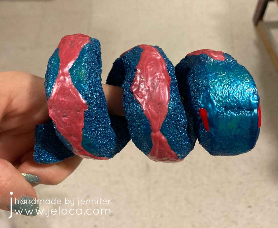 Back in 2016 I was doing the Christmas gift prep and realized I was short on a stocking stuffer for him. I’d been on a squishy-making kick, having made an assortment of faux food for Henri’s robo-hamster, and decided to try and see if I could figure out how to make a snake for Jakob.