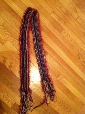 These colors suck ‘cus it’s late and there’s no natural light, and the flash completely washed them out. But still, I just finished twisting the fringe-